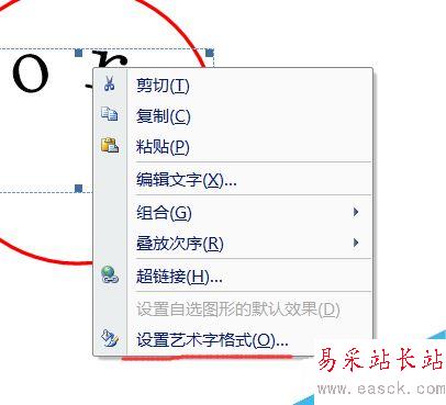 右鍵選中藝術(shù)字,單擊設(shè)置藝術(shù)字格式。