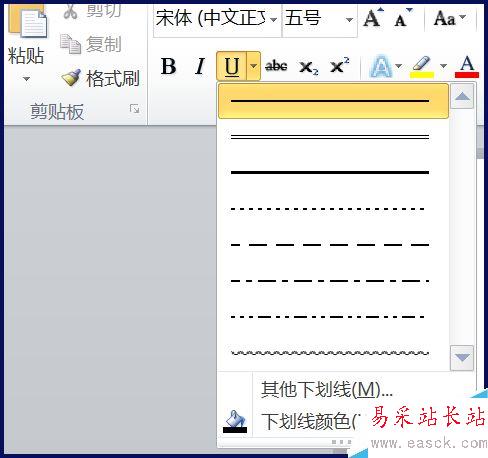 4、點擊【U】旁邊的小三角符號,可以設(shè)置不同的下劃線樣式和顏色等