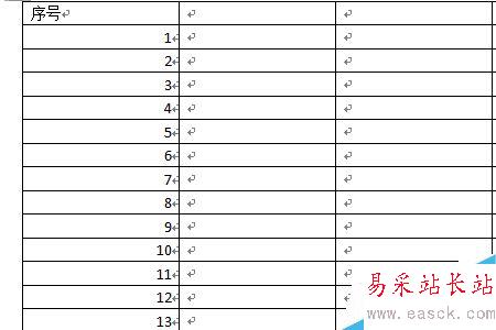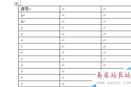 如圖所示,我們要在最左邊這一列進行數字從1至10的填充,先填入1,2。會發現word并沒有excel那樣可以下拉填充的功能。