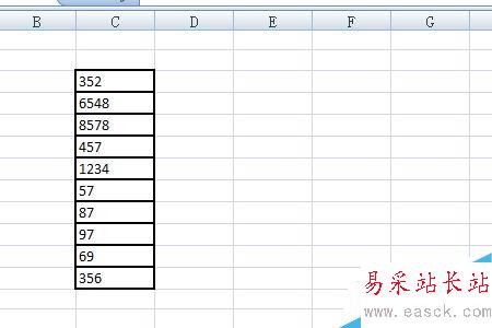 然后打開excel,把剛剛那十個數復制到excel當中。