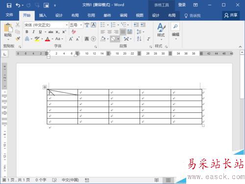 4、返回到Word編輯窗口,我們可以看到Word表格中的最基本的斜線表頭就已經完成了。如圖所示;