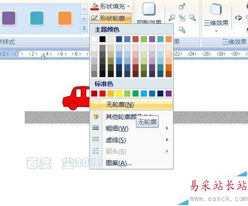 6、在形狀輪廓中選擇“無輪廓”,將矩形的線條去除。