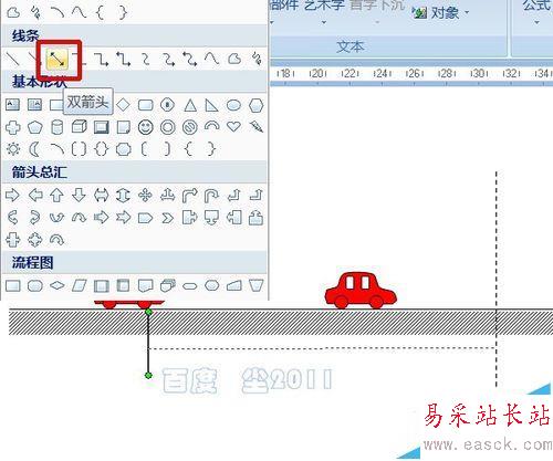 9、在第一輛小車前輪下拉出一根短直線作為標注的邊距,設置合適的粗細。