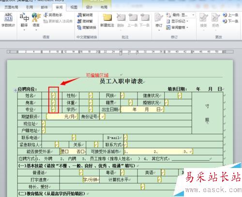7、確認后,就會發現文檔在可編輯區域是可以進行修改的,而其他區域一概無法進行操作,有效的限制了讀者的操作