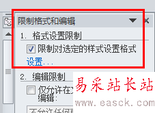 3、在“1 格式設置限制”中的“限制選定的樣式設置格式”處勾選上