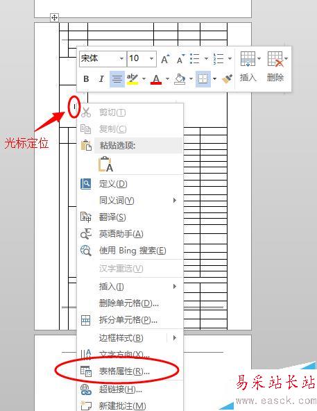 2、好了,現在小編就對癥下藥。鼠標點擊表格任意位置,將光標定位到表格中,然后單擊鼠標右鍵,在彈出的右鍵菜單中選擇表格屬性。