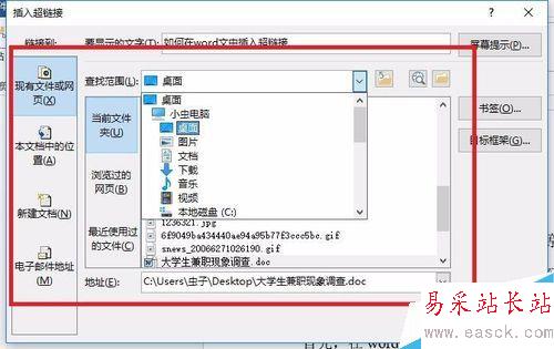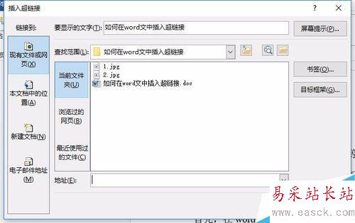 3、彈出“插入超鏈接”選項窗口,如圖;