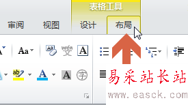 2、選擇單元格后,word2010菜單欄中會出現“布局”選項卡。