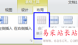 4、在“布局”選項卡中有“合并單元格”按鈕,如果沒選擇2個以上單元格,該按鈕會呈灰色。