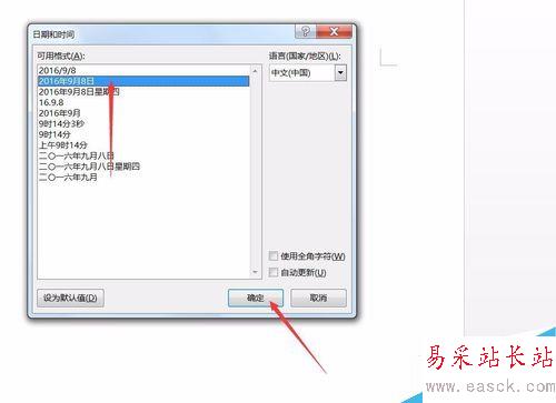 5、打開【日期和時間】對話框,選擇需要的時間和日期格式,點擊【確定】。