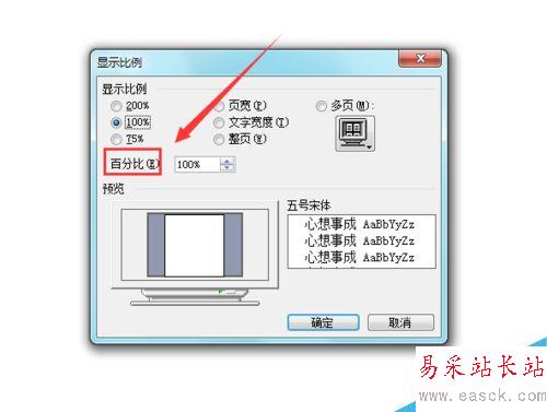 4、點擊顯示比例選項,彈出顯示比例設置對話框,如圖所示: