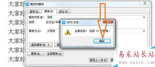 6、然后點擊“全部替換”在出來的窗口中點“確定”即可。然后把“替換“窗口關掉即可。這時就完成了文字的替換。
