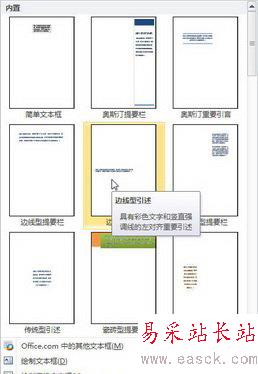 2、單擊“文本框”按鈕第2步,在打開的內(nèi)置文本框面板中選擇合適的文本框類型;