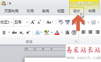 3、此圖中是點擊表格之后word2010的菜單欄,點擊后出現“設計”選項卡。此時點擊“設計”選項卡。