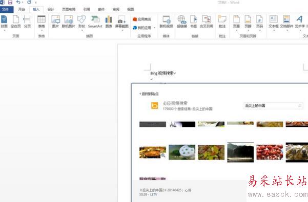 1、Word 2013集成了微軟自家的必應視頻搜索,我們點擊插入視頻