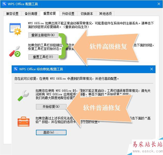 另外,WPS還附帶綜合修復(fù)配置工具,可對(duì)軟件本身出錯(cuò)進(jìn)行有效修復(fù)。