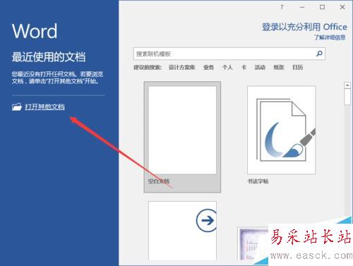 1、鼠標左鍵雙擊計算機桌面Word2016程序圖標,將其打開運行。在打開的Word2016程序窗口,點擊“打開其他文檔”,打開需要編輯或者修改的Word文檔。如圖所示;