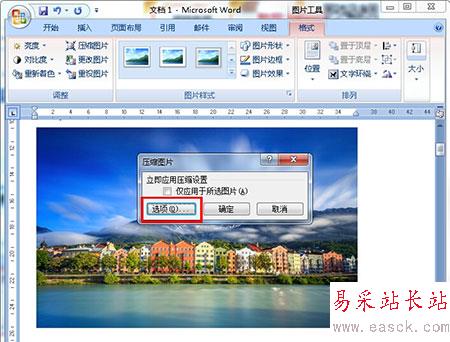 1.打開Word文檔,選中需要壓縮的圖片,接著點擊工具欄的“格式”→“壓縮圖片”。
