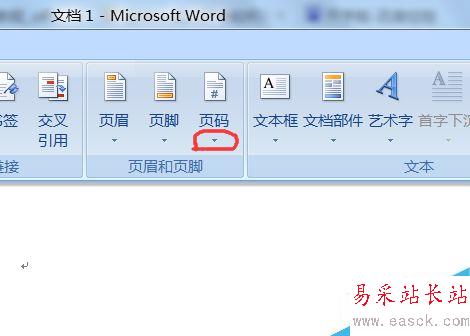 2、在工具欄里找到頁碼并單擊頁碼最下方的小箭頭。