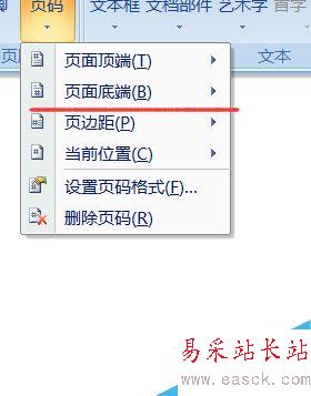 3、然后選擇將頁碼放置的位置,一般都是在文章的最下方,所以就選擇在頁面底端。