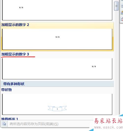 選擇好位置以后應該選擇頁碼樣式了,這時候拖動下拉鍵,找到加粗顯示的數字3.
