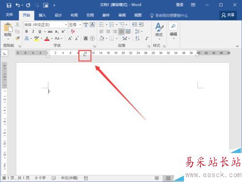 2、在打開的新建空白文檔中,鼠標(biāo)左鍵雙擊標(biāo)尺中的制表位。如圖所示;