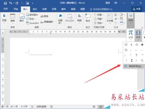 5、接下來需要插入剪刀的符號了,打開插入菜單選項卡,依次點擊“符號”-->“符號”-->“其他符號”選項。如圖所示;