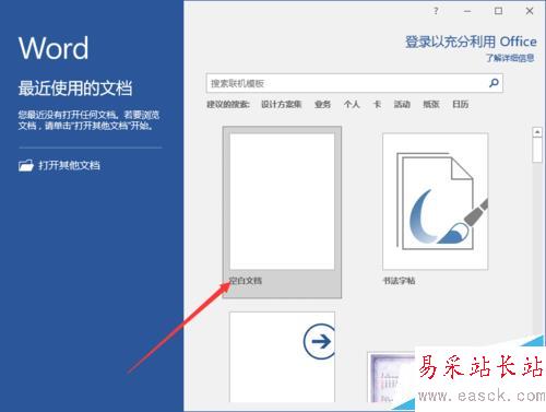 1、鼠標(biāo)左鍵雙擊計算機桌面Word2016程序圖標(biāo),將其打開運行。在打開的Word2016程序窗口,點擊“空白文檔”選項,新建一個空白Word文檔。如圖所示;