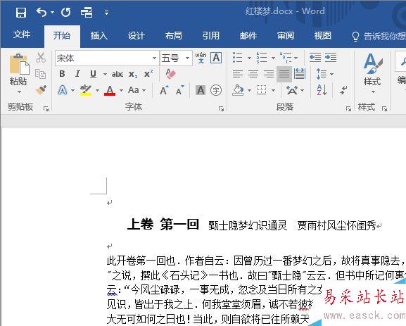 小編從網上下載的一本《紅樓夢》,每個回目只有“上卷 第XX回”標注了加粗,看起來很不醒目。下面我們通過格式替換的方式,一鍵將所有“上卷 第XX回”加大字號,變成黑體,從而更突出。