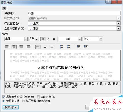 注意記得自己設置的樣式對應幾級標題,樣式名稱直白一點,比如:一級標題、二級標題、大標題。