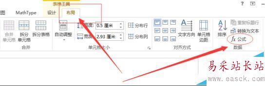 4、點擊表格中要輸入數據的位置之后,會看到菜單欄中出現“布局”,然后右上角就會看到數據里有“公式”。