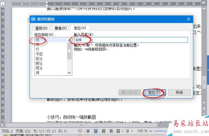 那么,要跳轉(zhuǎn)到某一頁、某一行或某個書簽怎么辦呢?好說!只需按下Ctrl+G組合鍵,按什么類型定位目標,就任你選了。點擊類型,輸入數(shù)字或關(guān)鍵字,點擊“定位”即可。
