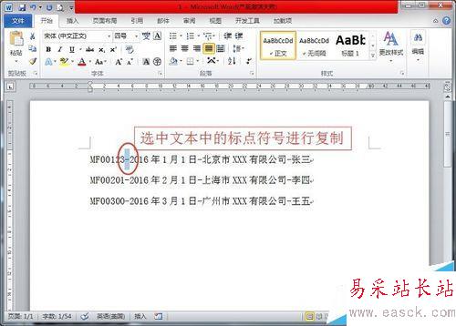 5、當(dāng)文本中的標(biāo)點(diǎn)符號(hào)不是英文輸入法下的“逗號(hào)”的時(shí)候,方法有一點(diǎn)區(qū)別,首先是選中文本中的分隔符號(hào),然后復(fù)制一下,如下圖