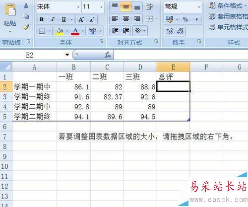 5、更改表格中的數據分別為班級與期中期末的數值。如圖。