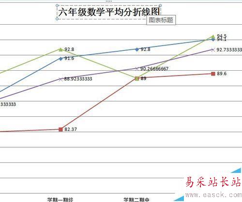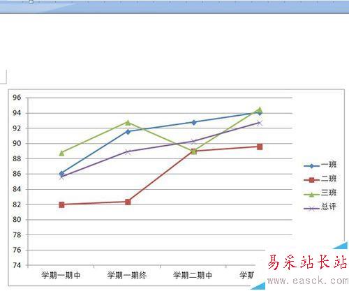 一個學年結束,各個年級、各個科的成績會做一個匯總。這時候用圖表的形式可以比較清楚、直觀的看到整個學期不同班級之間的對比。這里是折線圖的制作方法。