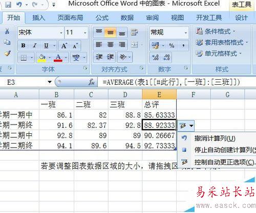 7、回車后,整列會自動按此公式計算,可以在右側出現的選項下拉箭頭中取消。