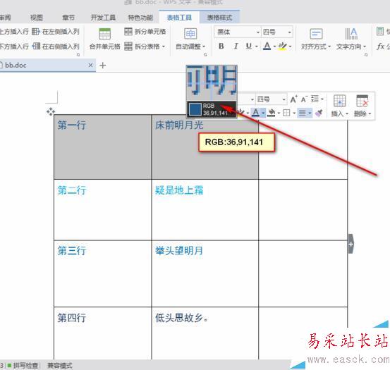 7、將所有行的字體設(shè)置成①顏色的藍色效果圖。