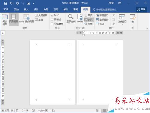 5、點擊多頁后,這個時候Word會自動調整顯示多頁頁面窗口。如圖所示;