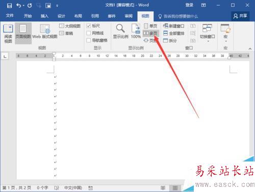 4、在視圖菜單選項卡中,點擊“顯示比例”功能區的“多頁”選項按鈕。如圖所示;