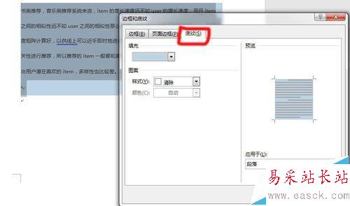 3、將填充下拉框打開,選擇白色或者無顏色,然后點擊確定,此時復制過來的內容背景顏色就去掉了,而且段落的其他格式設置都沒有改變。