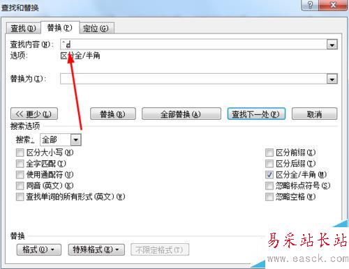 這個技巧主要是利用了查找與替換的功能,在替換的內容處,必須先把光標定位到空白位置。