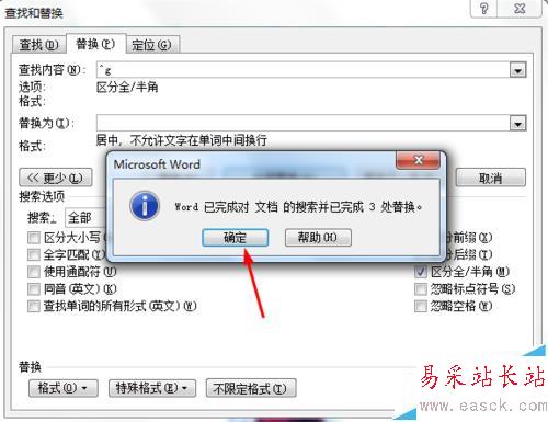 10、替換完成后,會彈出一個對話框,告訴你替換了幾個內容。