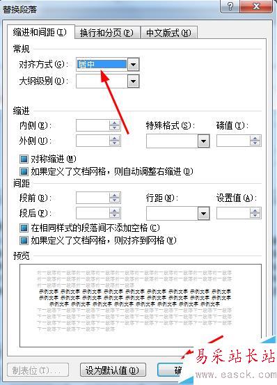 8、接著在對齊方式中選擇“居中”,點擊確定按鈕。