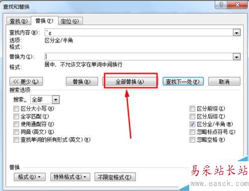 9、返回到“查找和替換”對話框,點擊“全部替換”按鈕即可。