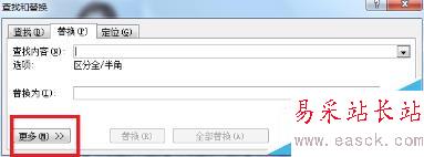 3、打開“查找和替換”對話框后,我們點擊“更多”按鈕。