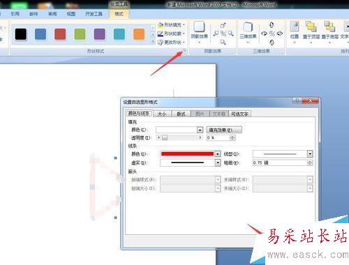 5、點擊最上方的形狀下的小箭頭,在設置自選圖形格式中,選擇紅色后,點擊確定。