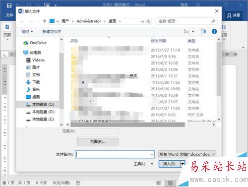 3、點擊“文件中的文字”命令選項后,這個時候會打開“插入文件”對話窗口。如圖所示;