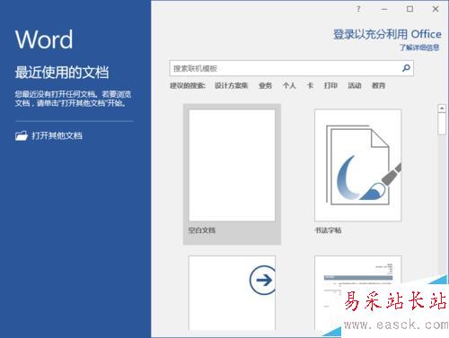 1、在計算機桌面上的Word2016文檔程序圖標雙擊鼠標左鍵,將其打開運行。并點擊“空白文檔”選項,新建一個空白Word文檔。如圖所示;