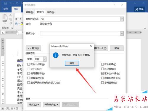 7、替換結束后,在彈出的“全部完成”對話框中,點擊“確定”按鈕,并關閉“查找和替換”對話框。如圖所示;