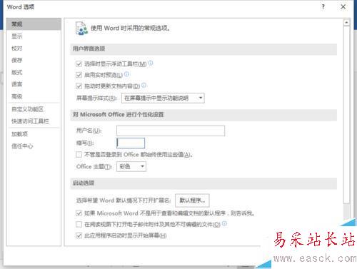 4、點擊“選項”命令選項后,這個時候會打開“Word選項”對話窗口。如圖所示;